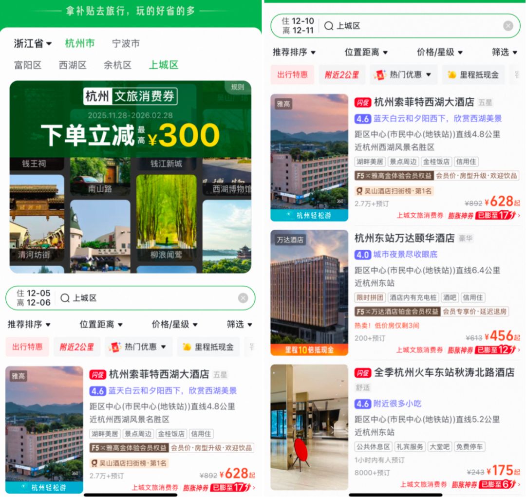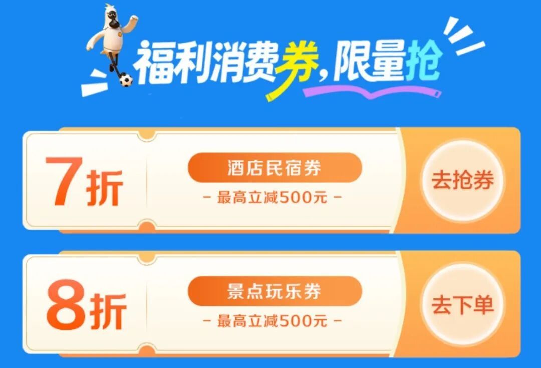 分为住宿券和游览券,每个类型可领1张,单张最高可减360元。