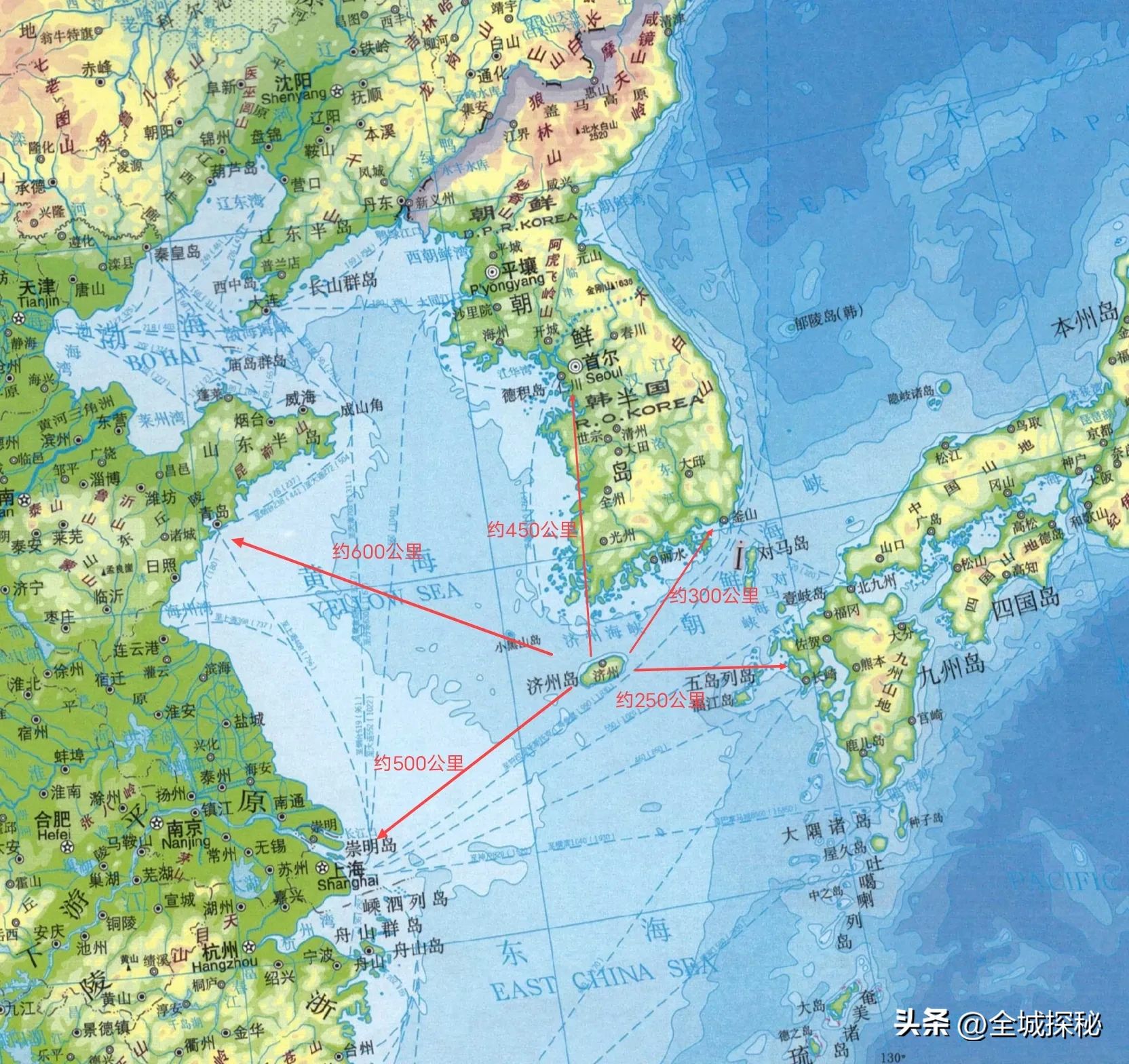 它的西部,则与我们隔着黄海相望,距离我们的青岛约600公里,距离上海更是只有500公里左右;