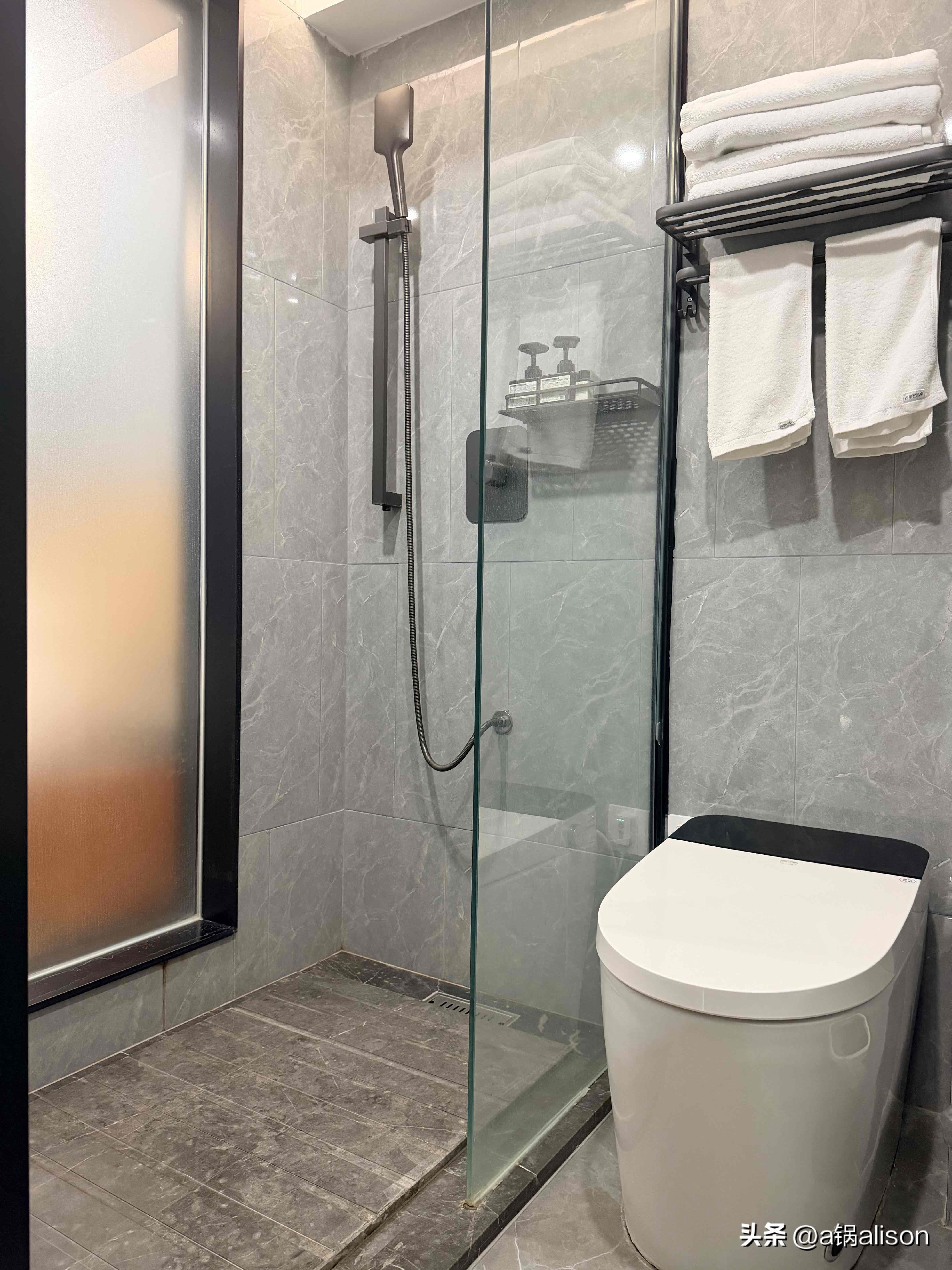 我们住的家庭房位于酒店3楼。里面有两个房间,每个房间都有一张大床、一个投影和一个干湿分离智能马桶的卫生间。主房有一个沙发还有个办公桌,方便放东西和办公,卧室和主房有房门隔开,有效确保私密性。