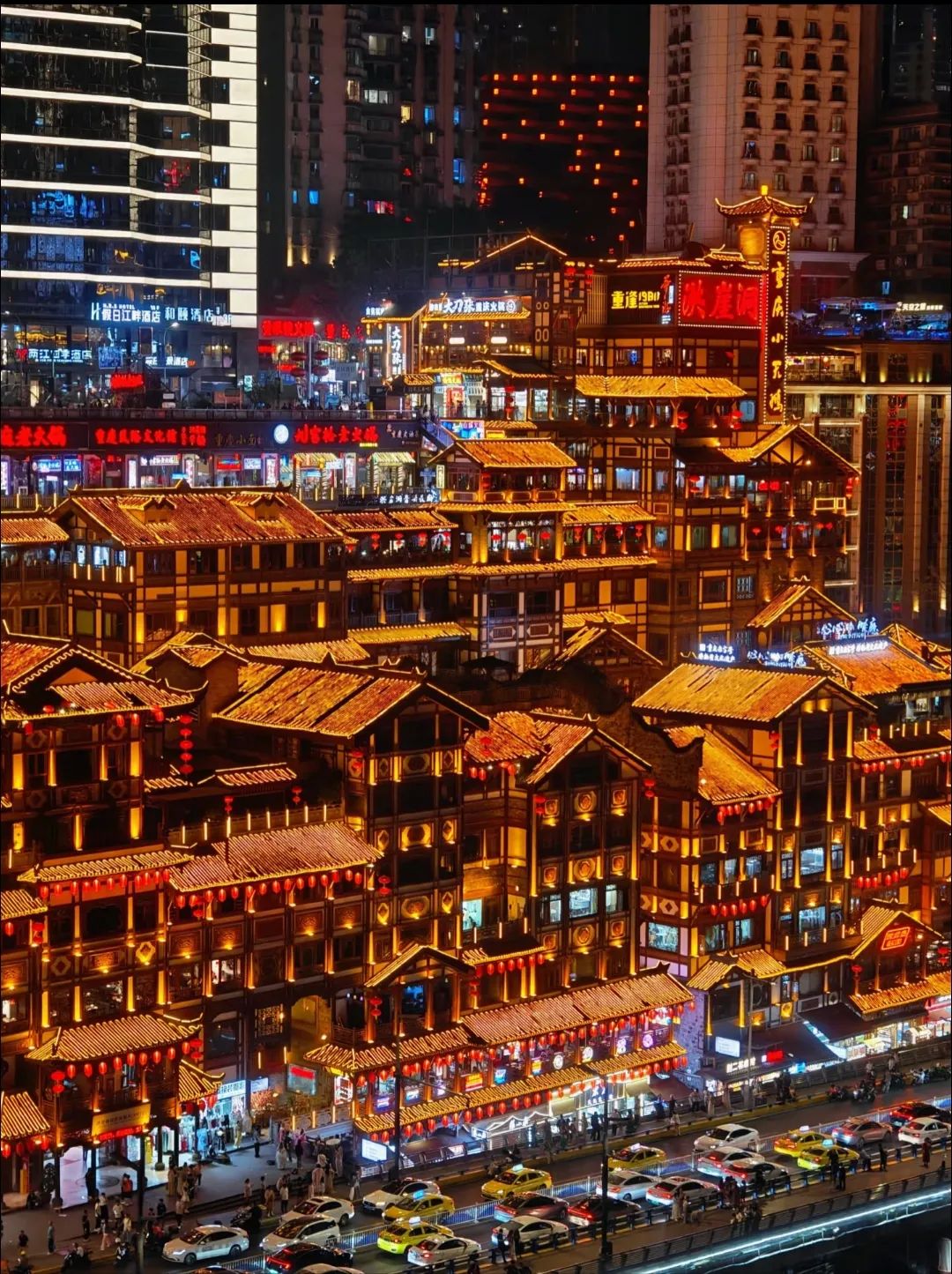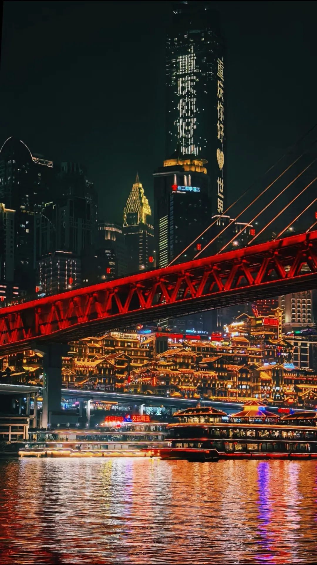 到了晚上,一定要去洪崖洞。当夜幕降临,洪崖洞就像一座梦幻的城堡,灯火辉煌。它的建筑风格独特,是巴渝传统建筑特色“吊脚楼”的现代演绎。走进洪崖洞,仿佛穿越到了古代的巴渝小镇。这里有各种特色小吃、手工艺品店,让你逛个不停。从洪崖洞出来后,沿着江边走到千厮门大桥上。站在桥上,一边是洪崖洞的璀璨灯火,一边是江对岸的繁华夜景,江风拂面,那种感觉简直太美妙了。