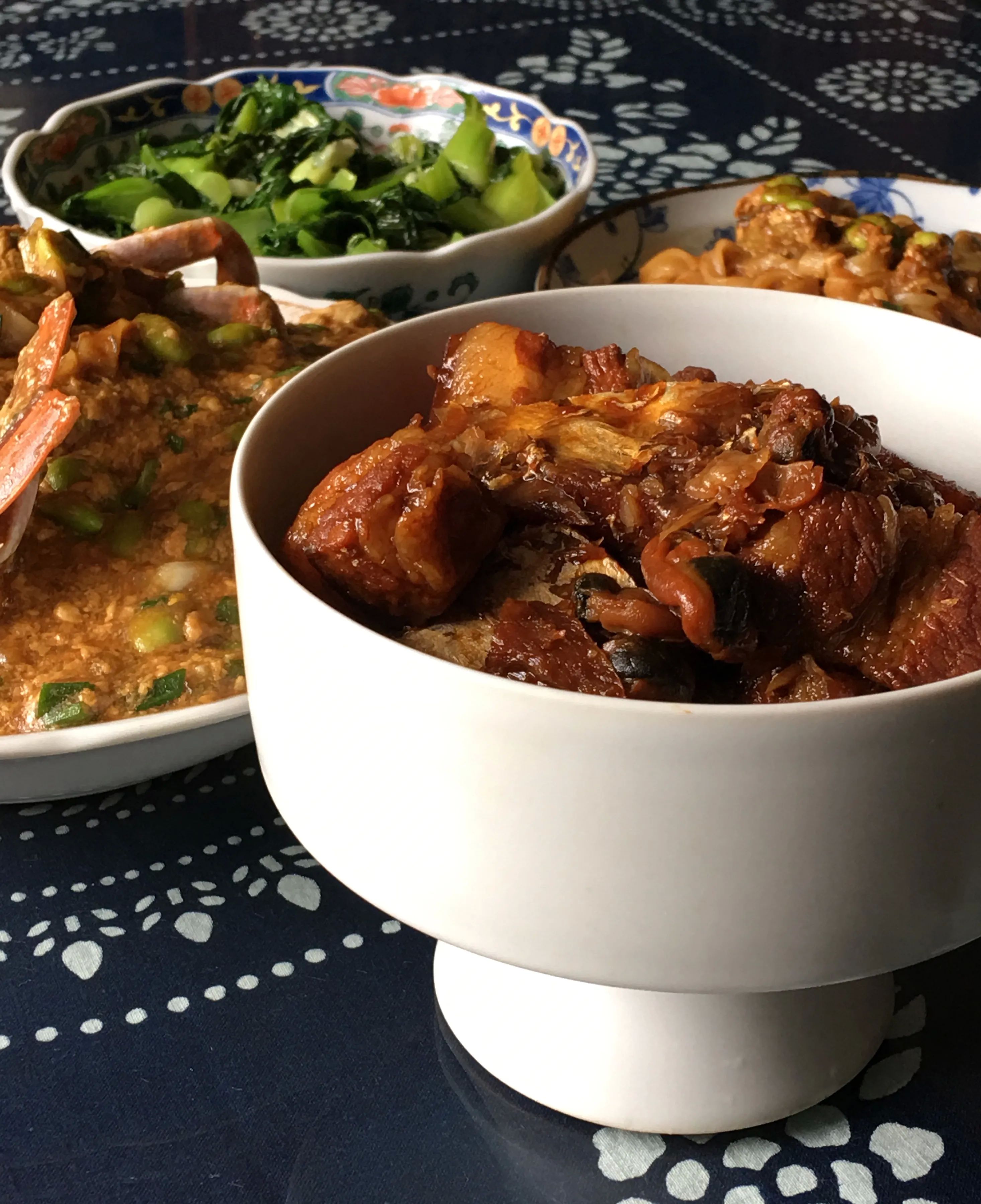 我家祖籍浙江绍兴。自小,印象中的年菜有三只大砂锅:一砂锅霉干菜烧肉,一砂锅水笋烧肉,一砂锅黄鱼鲞烧肉。