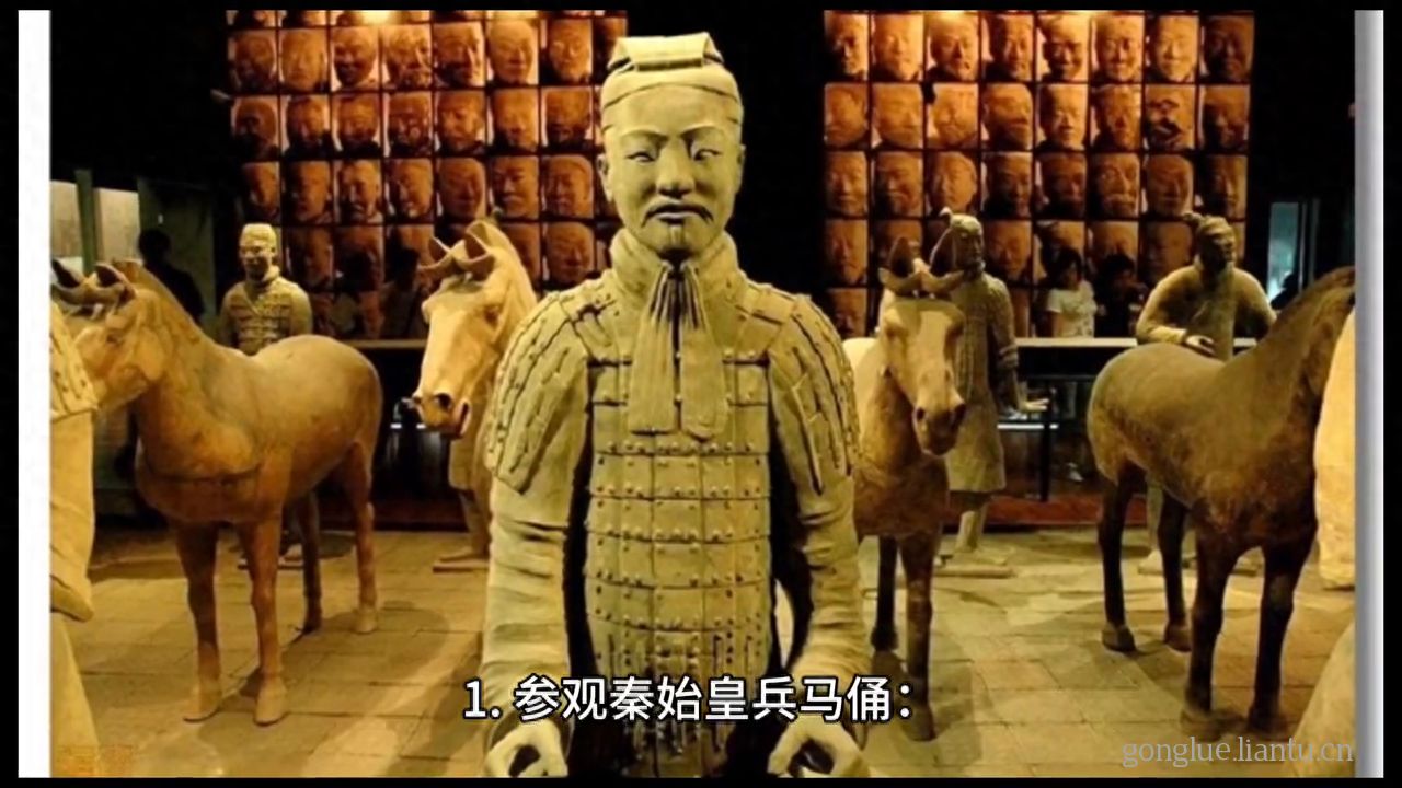 ·1.参观秦始皇兵马俑:秦陵兵马俑位于西安市区东北部,距离市中心约40公里,这是中国历史文化的重要遗产之一。游客可观赏真实的兵马俑形象以及了解秦朝的历史文化。