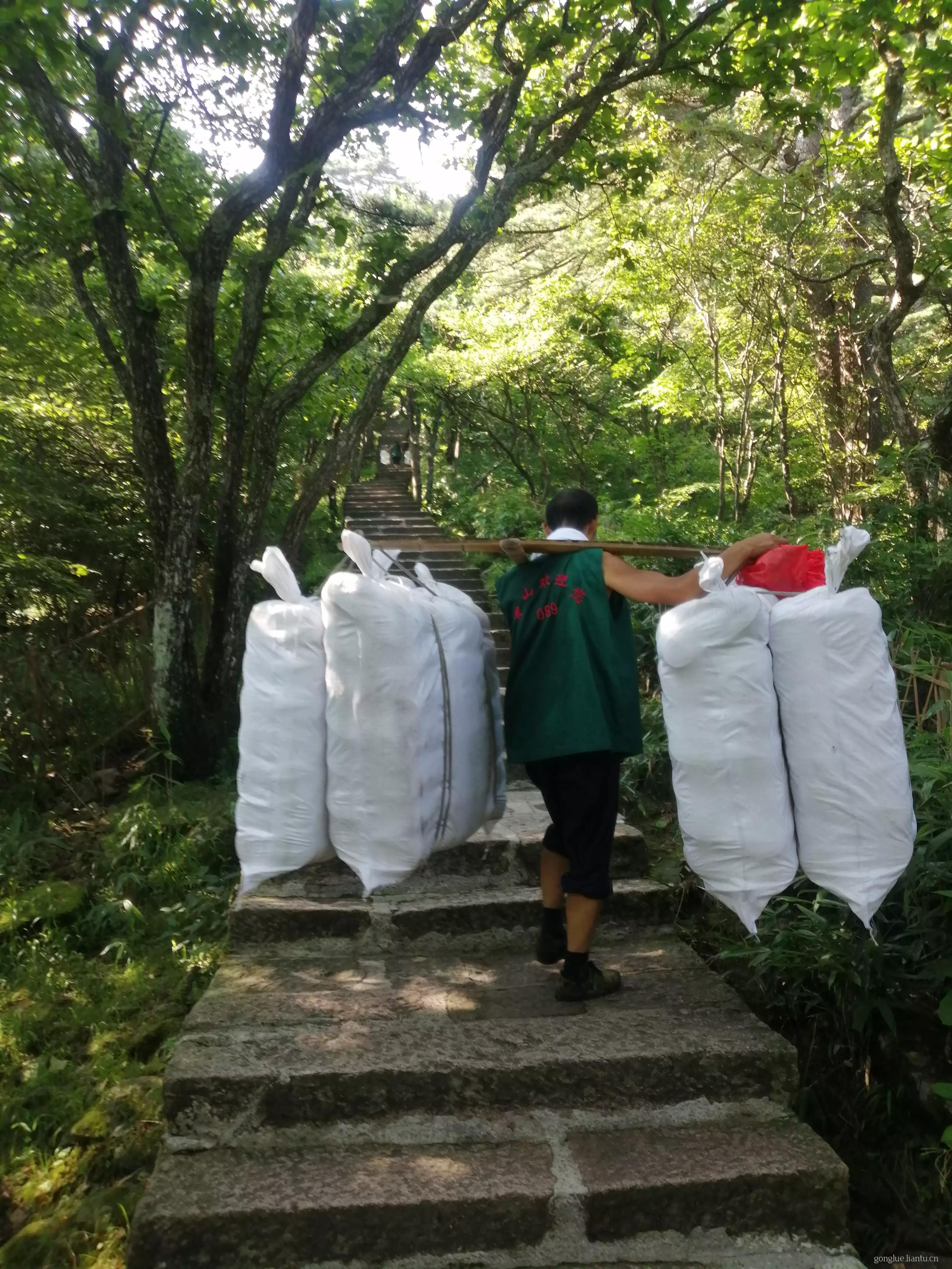 山上的物资及垃圾都是人工这样挑上去,挑下来的。