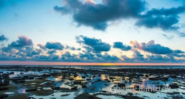 退潮时的五彩滩,可以见到一层又一层的海蚀沟,在阳光的照耀下,十分漂亮。