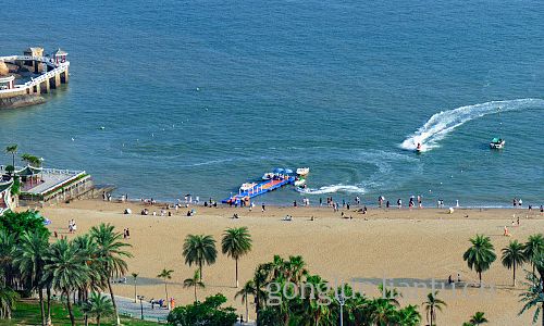 港仔后宽阔沙滩上,砂质细软、坡缓浪平、海水流速小,没有鲨鱼出没,每年有5个半月海水温在20℃以上,泳季可达半年之久,每日有两次潮水,宜泳时间六个多小时,是天然海滨浴场。