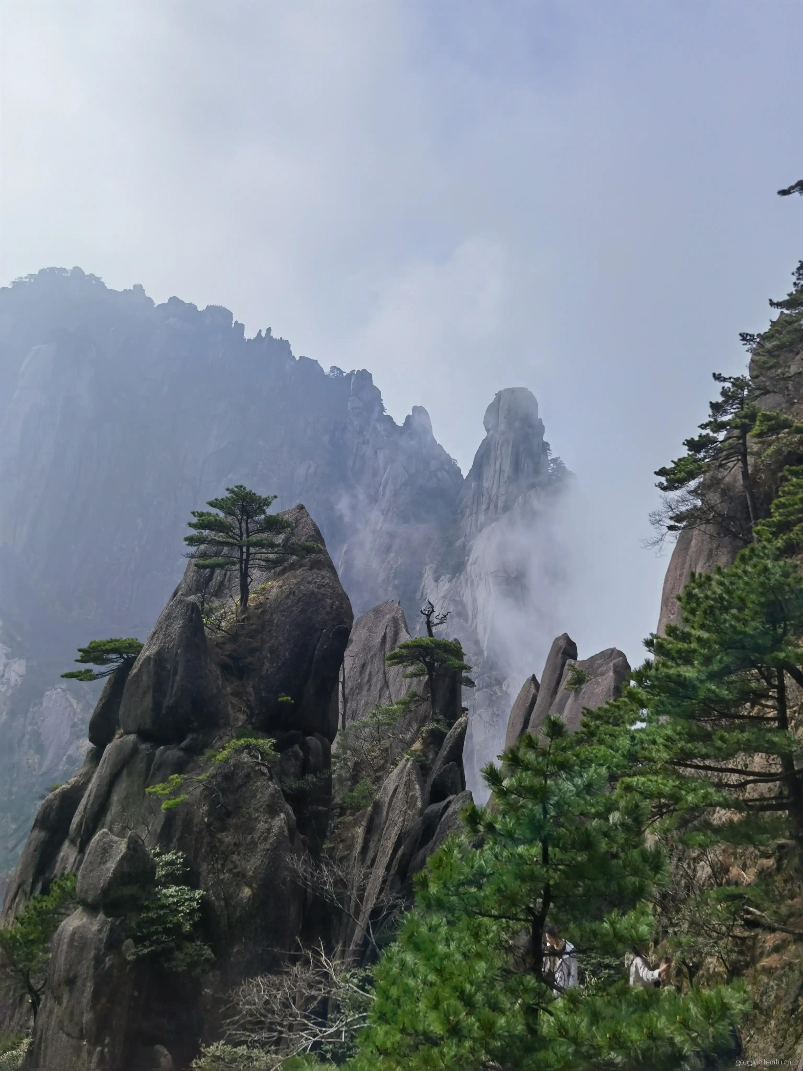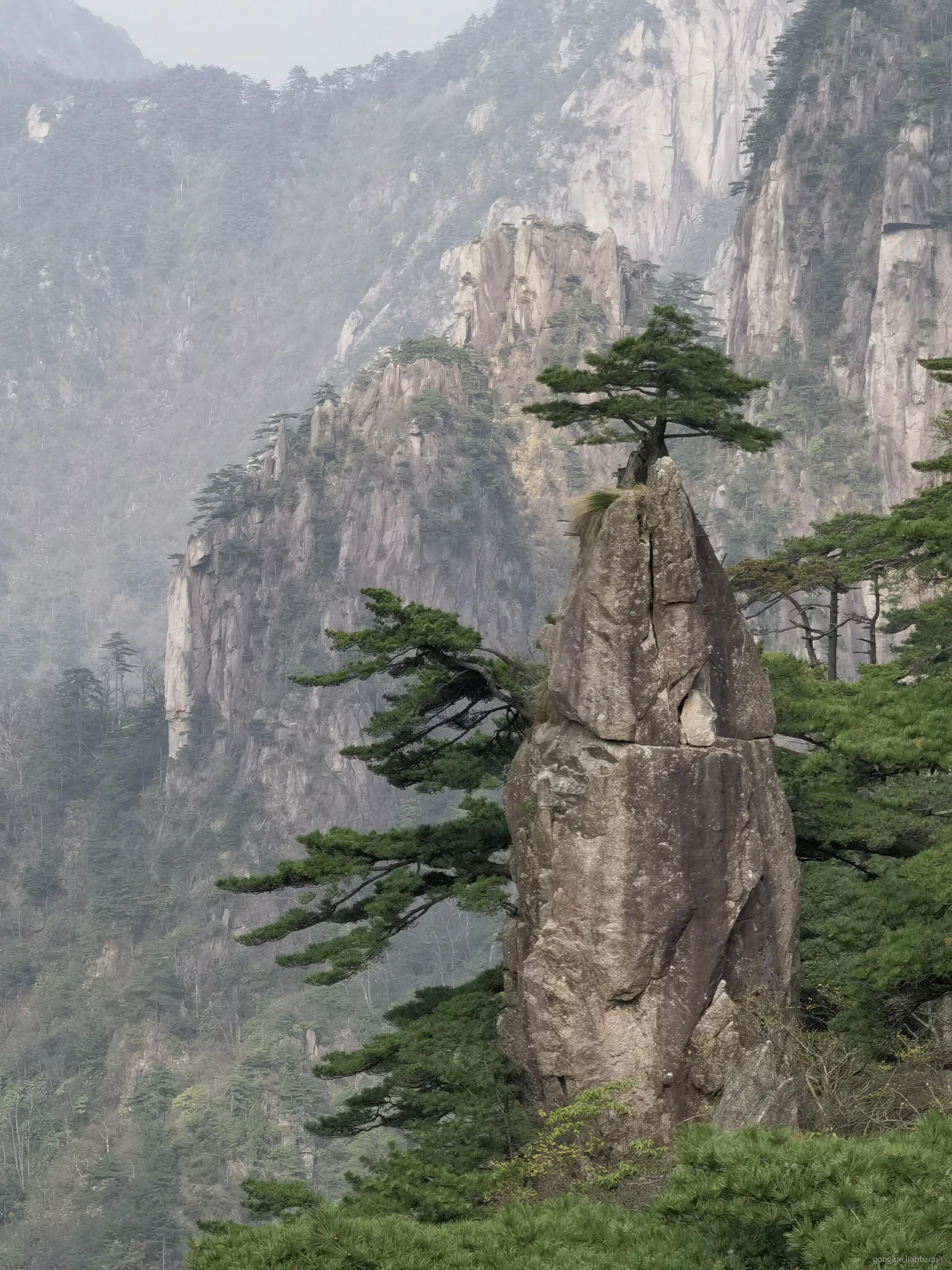 迎客松是一日游必去景点第一站,迎客松站还有石刻等景点可以拍照。