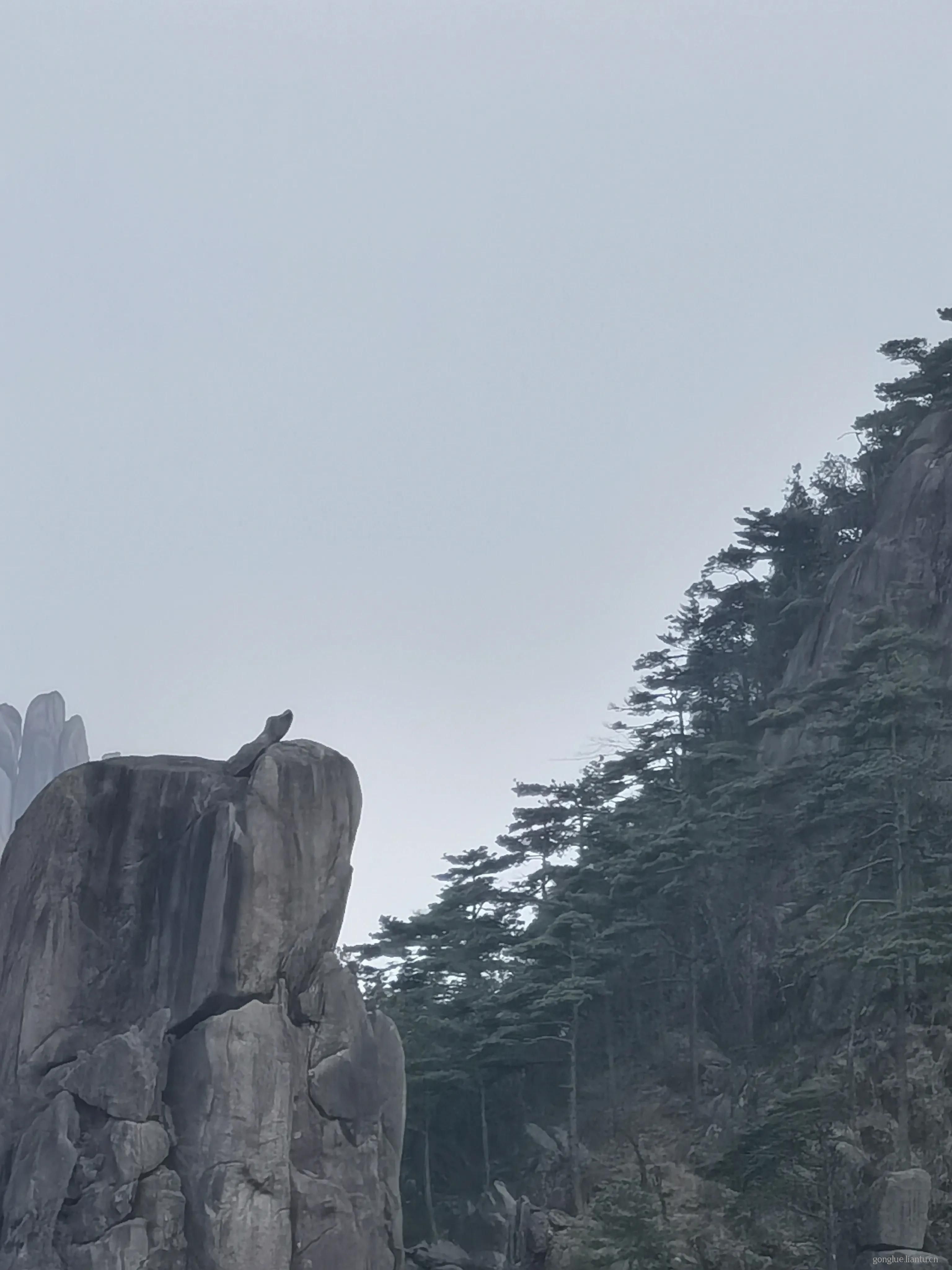 经过梦笔生花景点,往始信峰景点前进,始信峰景点是摄影师拍猴子观海处,此处观看更像猴子,但距离较远,手机拍摄效果一般