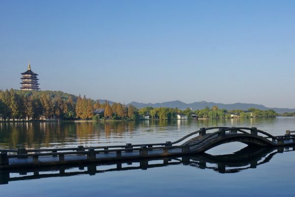 西湖,又名钱塘湖,位于中国浙江省杭州市西湖区龙井路1号,杭州市区西部,汇水面积为21.22平方千米,湖面面积为6.38平方千米。