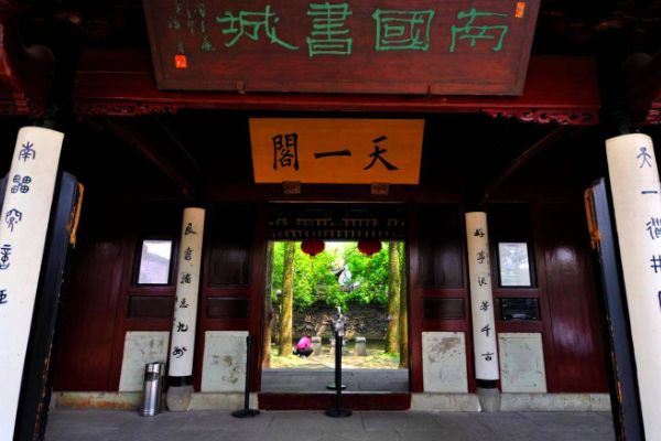 天一阁,位于浙江省宁波市海曙区,建于明嘉靖四十年至四十五年,由当时退隐的明朝兵部右侍郎范钦主持建造,占地面积2.6万平方米,已有400多年的历史。