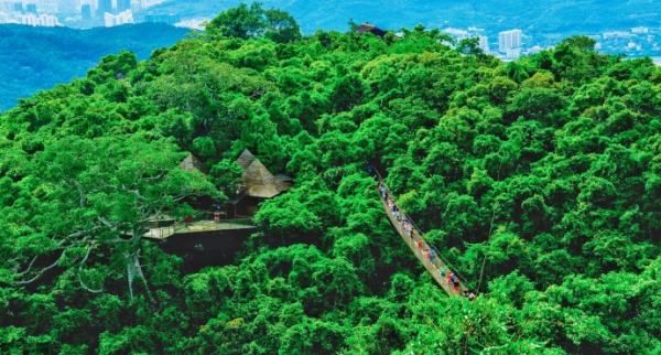 2、园区内树木葱茏,能看藤萝密布、溪水潺潺;观赏百年古藤、参天巨榕;一路虫唱鸟鸣欢闹,极尽野趣。