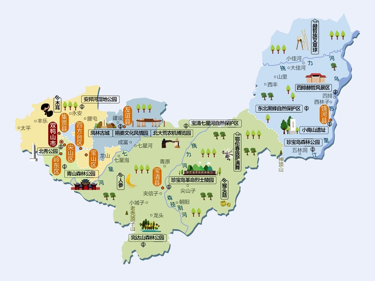 双鸭山旅游地图