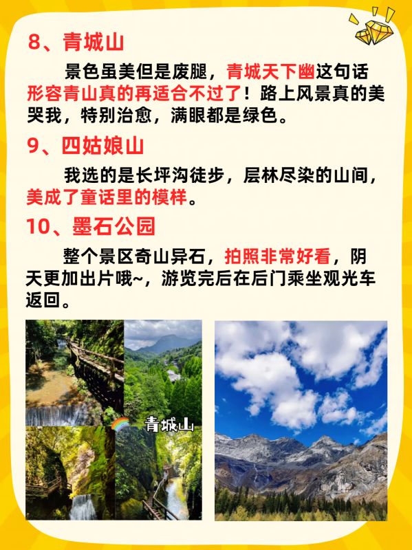 我一直想去四川旅游,但是不知道该去哪些景点,刚好同事老家是四川的,给我推荐了几个川西美景一定要去的景点,她说热爱生活就去四川,景色让人流连忘返。