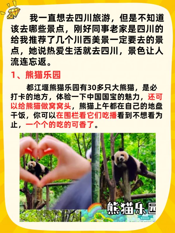 我来介绍四川旅游中的必去景点,让您在这片神奇的土地上尽情畅游。四川以其独特的地理环境和丰富多样的自然景观而闻名于世,让我们一起探索四川的奇迹。