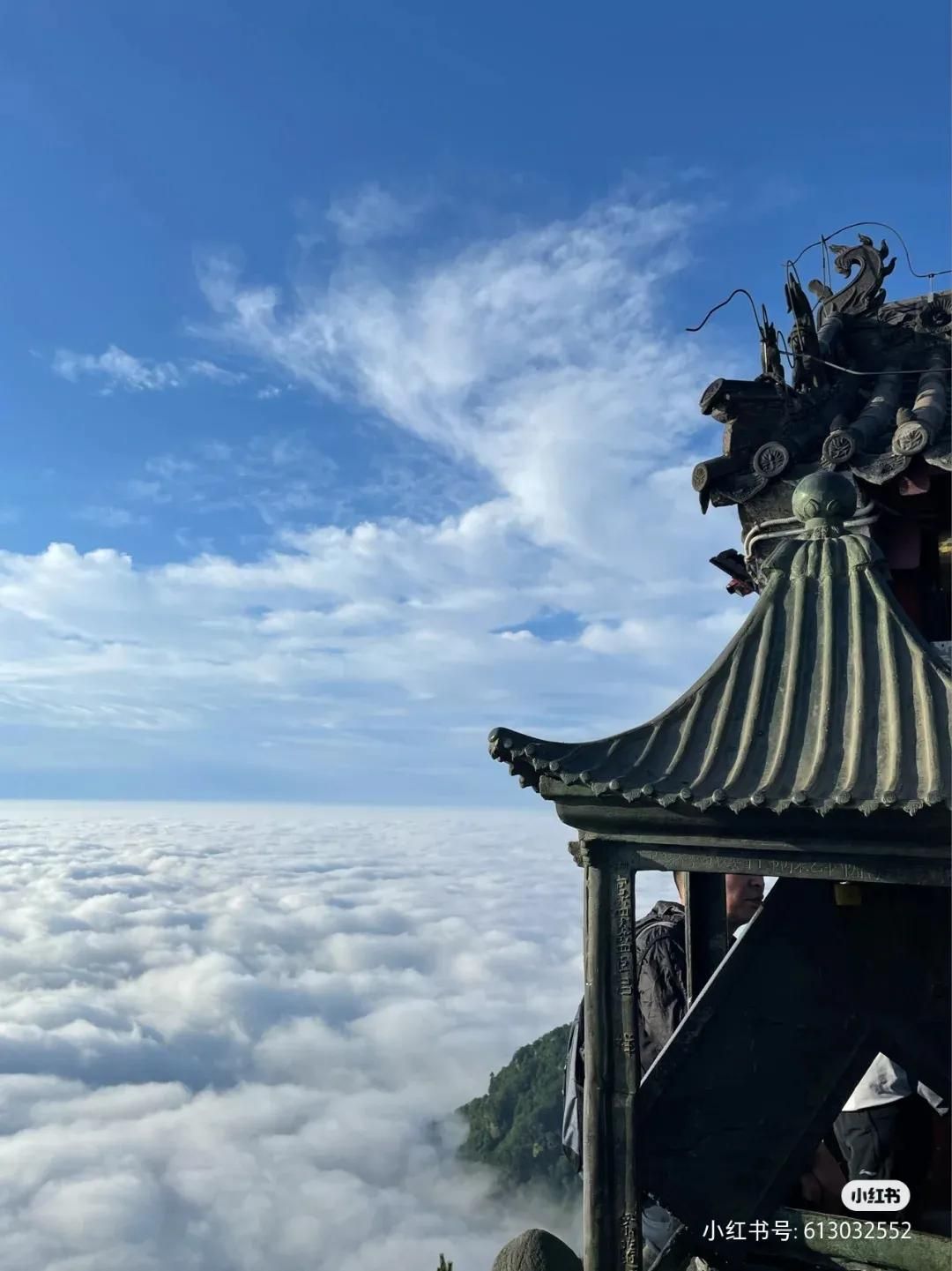 day2☀️☀️:凌晨3:20出发,开始夜爬,准备好手电筒,爬到朝天宫的时候一定要走左边那条路!!!清代古神道!!!下山可以选择右边。凌晨4:30,天边已经开始发到,我就加快了步伐。凌晨5:00,到达金顶下面的观景台,这个地方是看日出的绝佳位置,静静等待日出就行。 上金顶,金顶要买票27元/人,很值得一买。感觉自己到了天宫一般,真的也能壮观,金灿灿 的金顶配上蓝天白云,山峰都在云层之下,感觉 真是要升仙了 。