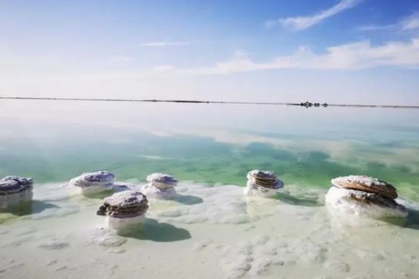 新疆盐湖景区新建盐雕艺术群、心灵之浴、室外漂浮、盐滩、徒步道,还增加了游船、卡丁车、滑草等娱乐项目,以旅游、度假、养生为主的新盐湖景象。