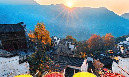 婺源篁岭秋天最美观赏时间是9-10月,此时成为摄影家的天堂。婺源的秋天,高大的红枫,与白墙黑瓦马头墙掩映为一体,形成别具特色的红枫林景观。