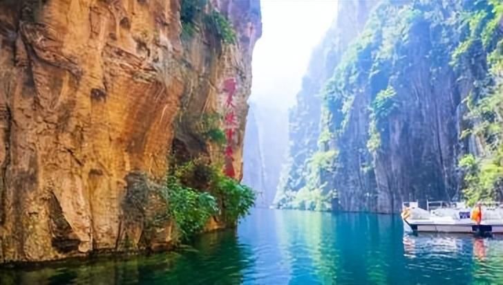 继续向前,就到了太行第一雄峡——八泉峡。在这里,可观高峡出平湖,可进幽谷听泉声,乘船在峡谷间穿行,巍峨陡峭的绝壁、重峦叠嶂的山岩、绿浪滔天的林海、清澈见底的深潭……北方山川的壮观和江南水乡的柔美完美融合,绚丽多彩的景象便尽收眼底。更有网红打卡地“心形天空”,大自然的鬼斧神工,带来的是无穷无尽的惊喜。