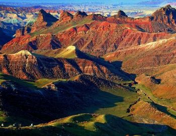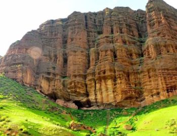 地处呼图壁县南部山区,其所在侏罗纪山脉喀拉扎组山是中国最长的侏罗纪山脉,形成于7000万年前的喜马拉雅造山运动,被人称为“天山地理风光走廊”,山体雄浑巍峨,峭壁悬崖层层叠叠,赭红色,橙、黄、青、绿相杂其间,酷似摩天大厦。