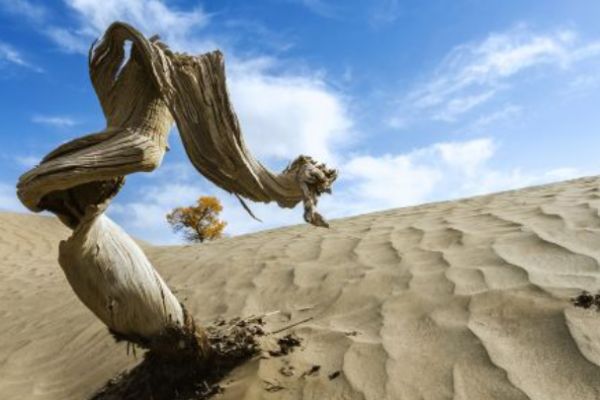 塔克拉玛干沙漠全长约一千公里,分布在巴音郭楞、阿克苏、喀什、和田几个地区,流动沙丘的面积较大,景色壮丽。