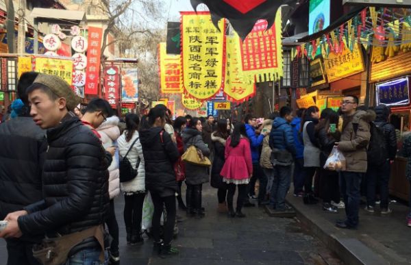 回民街是几百年的回民老街区,有吃不尽的西安美食。回民街可以说是西安市的名片,来西安不去回民街是说不过去的,这里是著名的小吃一条街,和武汉的户部巷、成都锦里、南京夫子庙齐名。招牌美食有牛羊肉泡馍、麻酱凉皮、肉夹馍、镜糕和各类面食等。