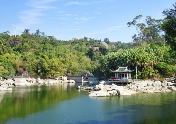 厦门园林植物园,俗称“万石植物园”,位于福建省厦门岛东南隅的万石山中,背靠五老峰、南普陀寺、厦门大学,紧邻中山路商圈。厦门园林植物园已建成松衫园、裸子植物区、棕榈岛、蔷薇园、沙生植物区、雨林世界、花卉园、藤本区等特色专类园十多个。