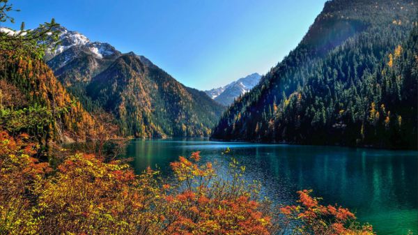 九寨沟自然保护区地势南高北低,山谷深切,高差悬殊,区北缘九寨沟口海拔仅2000米,中部峰岭均在4000米以上,南缘达4500米以上,主沟长30多公里。峰顶和两侧山峰基本终年积雪。