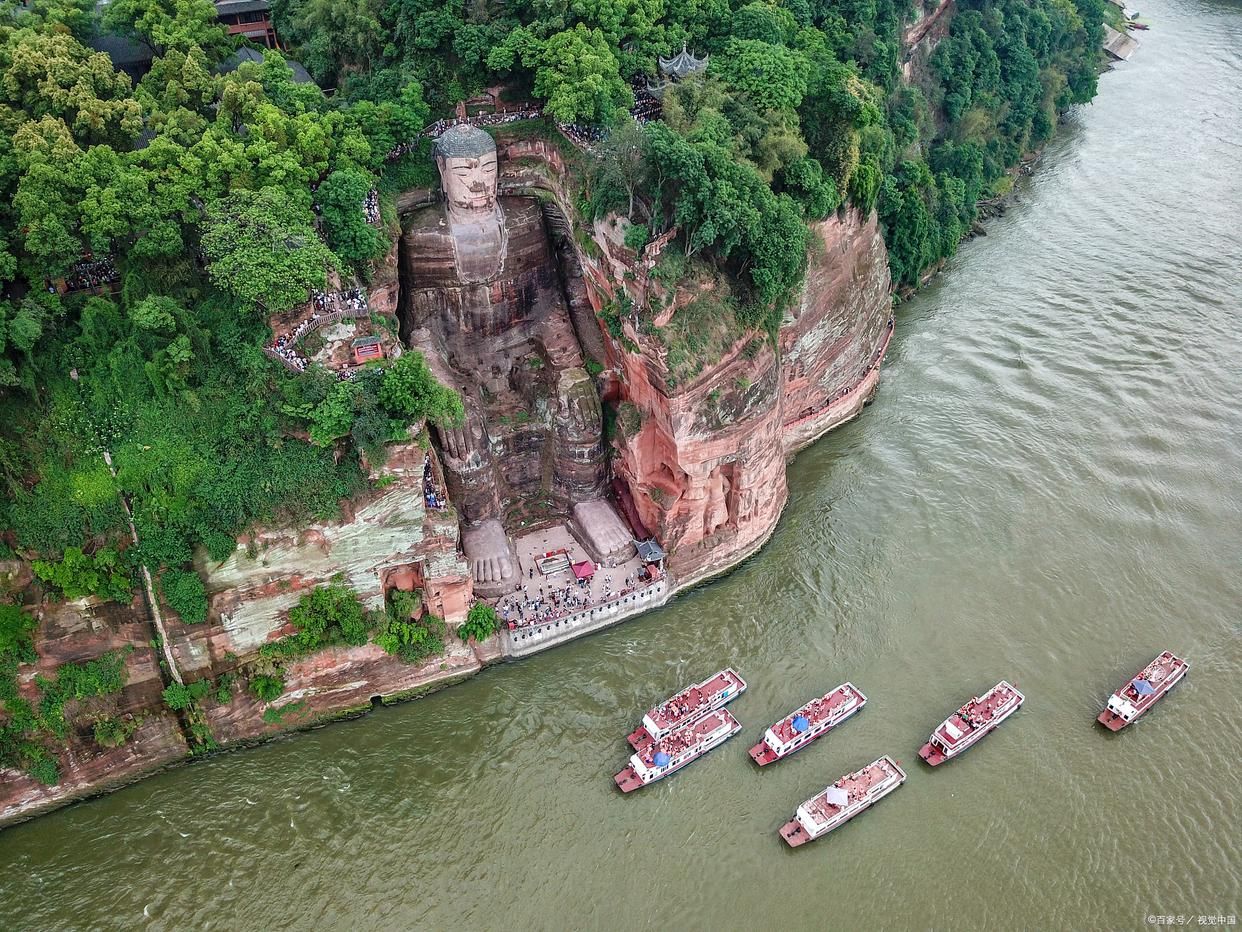 乐山大佛全名为嘉州凌云寺大弥勒石像,又名凌云大佛,古称“嘉州大佛”“弥勒大像”。是世界现存最大的一尊置于露天摩崖石刻造像。乐山大佛通高71米,佛像为弥勒佛坐像,佛像始于唐代开元初年(公元713年)修建,完成于唐代贞元十九年(公元803年),建造历时约九十年。佛像位于四川省乐山市峨眉山东麓栖鸾峰南岷江凌云寺,雕刻于岷江、青衣江、大渡河三江交汇处的岩壁。