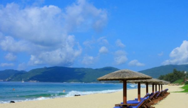 大东海:大东海位于三亚市的榆林港和鹿回头之间,月牙形的海湾,辽阔的海面晶莹如镜,只见白沙融融,阳光、碧水、沙滩、绿树构成了一幅美丽的热带风光图画。景区内海滨度假旅游设施配套齐全,此外还有大型海滨广场、嬉水乐园、旅游潜艇码头、潜水和跳水基地等。