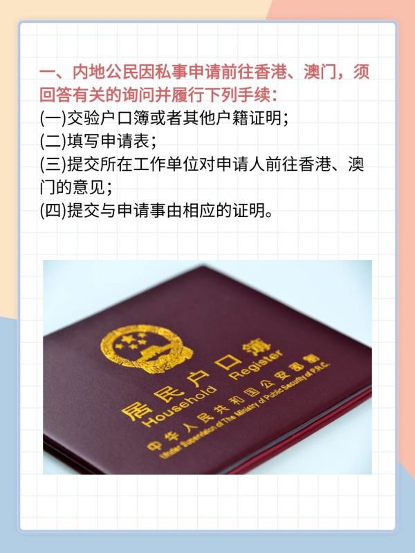 一、内地公民因私事申请前往香港、澳门,须回答有关的询问并履行下列手续: