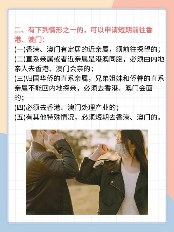 二、有下列情形之一的,可以申请短期前往香港、澳门: