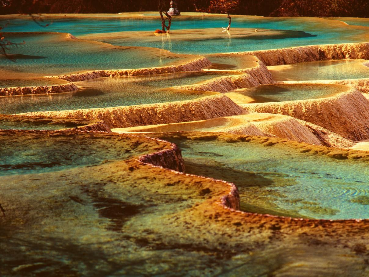 黄龙景区以彩池、雪山、峡谷、森林四大景观著称,还有古寺、藏族风情和多处飞瀑流泉。其彩池是黄龙景区最具代表性的景观之一,大大小小的彩池数目众多,形态各异,犹如巨龙身上的龙鳞,被誉为“黄龙彩池”。