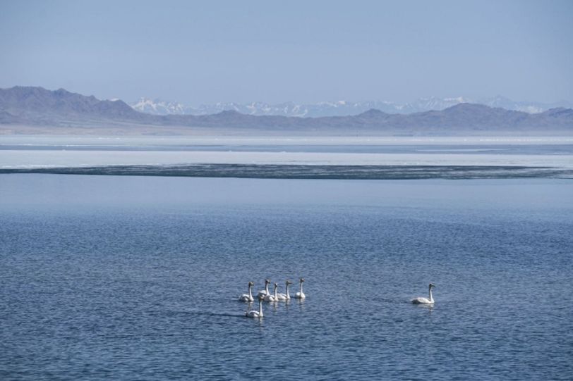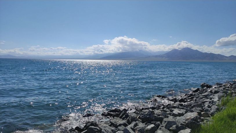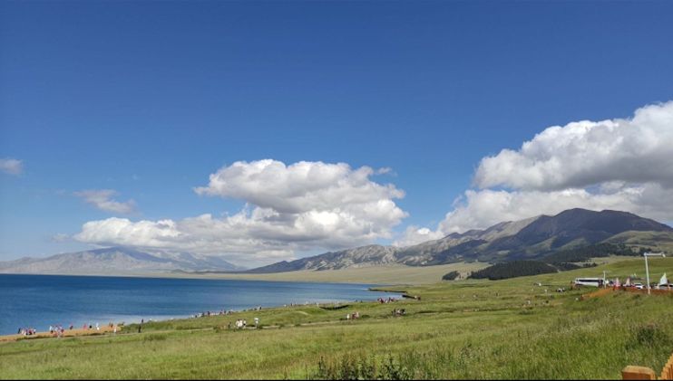 ⒉塞里木湖景区金花紫卉:湖景很美,湖水很纯净,可以不同角度欣赏湖的不同美景。晚上看星星很棒很美,这里也有全地形车可以玩,可以感受湖风的清新。