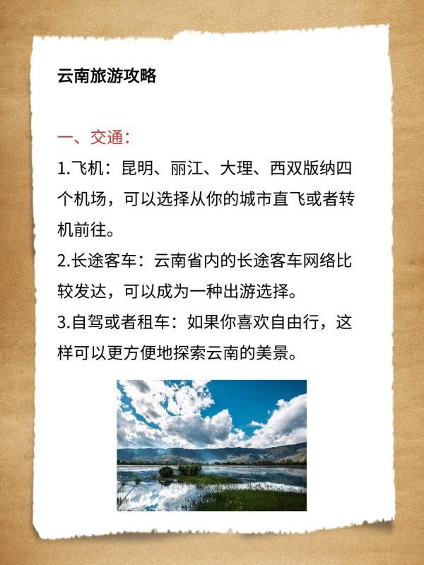 3.自驾或者租车:如果你喜欢自由行,这样可以更方便地探索云南的美景。