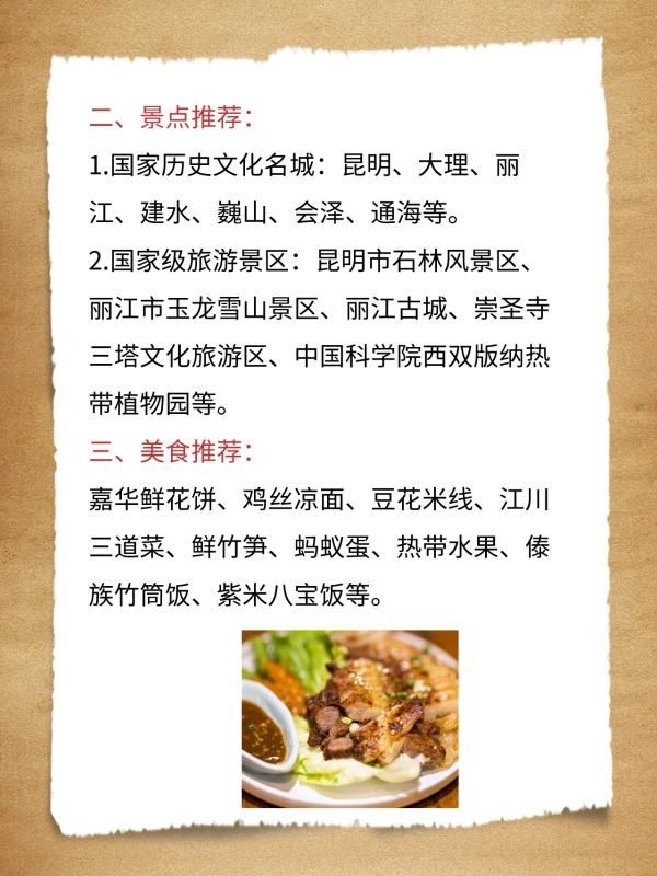 2.国家级旅游景区:昆明市石林风景区、丽江市玉龙雪山景区、丽江古城、崇圣寺三塔文化旅游区、中国科学院西双版纳热带植物园等。