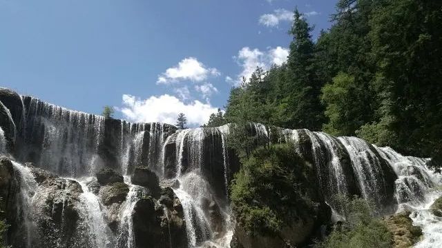 九寨沟的瀑布,极具盛名。这里几乎所有的瀑布,都是从密林里狂奔而出,就像一台台绿色织布机,织造着不同规格的白色丝绸。九寨沟的瀑布,像箭竹海瀑布,熊猫海瀑布,诺日朗瀑布,很大特性是宽阔。还有那珍珠滩,据说是电视剧《西游记》片头中,唐僧师徒牵马涉水的地方,我连忙用手机,定格在永远的记忆中。