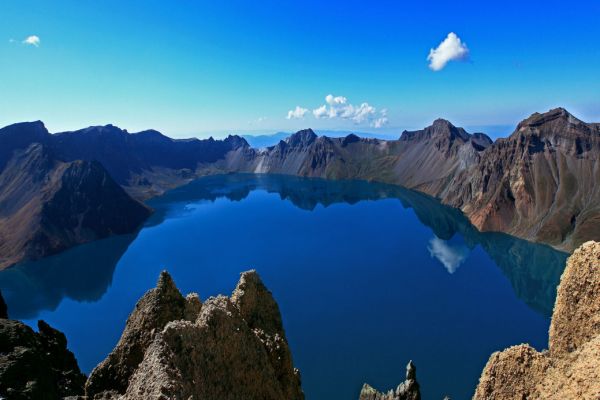 1、长白山天池。长白山天池位于长白山主峰火山锥的顶部,这里四季风光迷人,是来长白山的必游之地。登上山顶可见群峰叠嶂、气势恢宏,十六座山峰簇拥着一潭平静的湖水,在蓝天晴空的映照下,湖水深邃幽蓝,格外迷人。