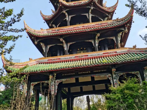 成都市望江楼位于成都市望江楼公园内,望江楼公园位于成都市东门外九眼桥锦江南岸一片茂林修竹之中,面积176.5亩,园内岸柳石栏,波光楼影,翠竹夹道,亭阁相映,主要建筑崇丽阁、濯锦楼、浣笺亭、五云仙馆、流杯池和泉香榭等,是明清两代为纪念唐代著名女诗人薛涛而先后在此建起来的。