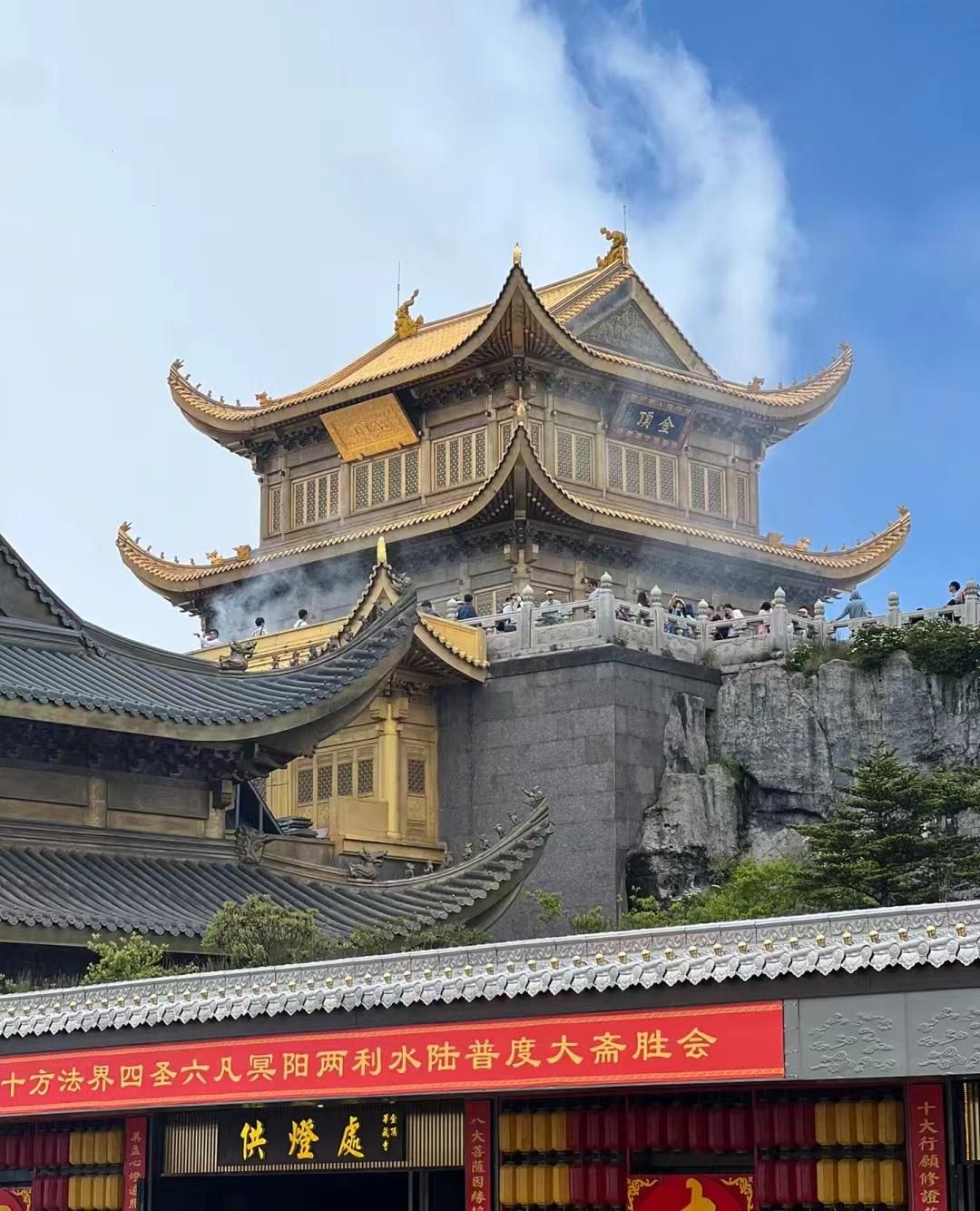 到达金顶时已经是中午了,可以选择吃自备的干粮,也可以在附近就餐(价格略贵)