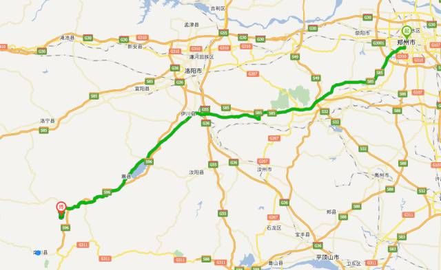 郑州市——郑少洛高速——洛栾高速——重渡沟收费站下车