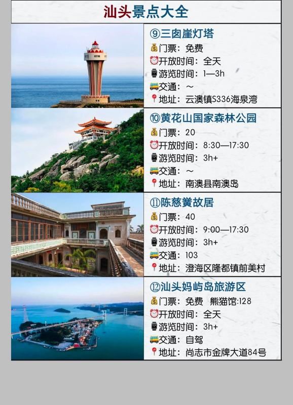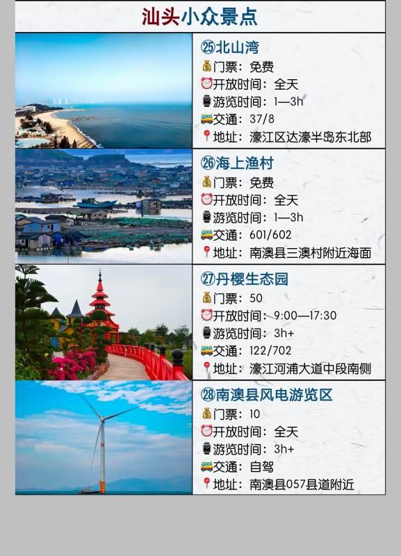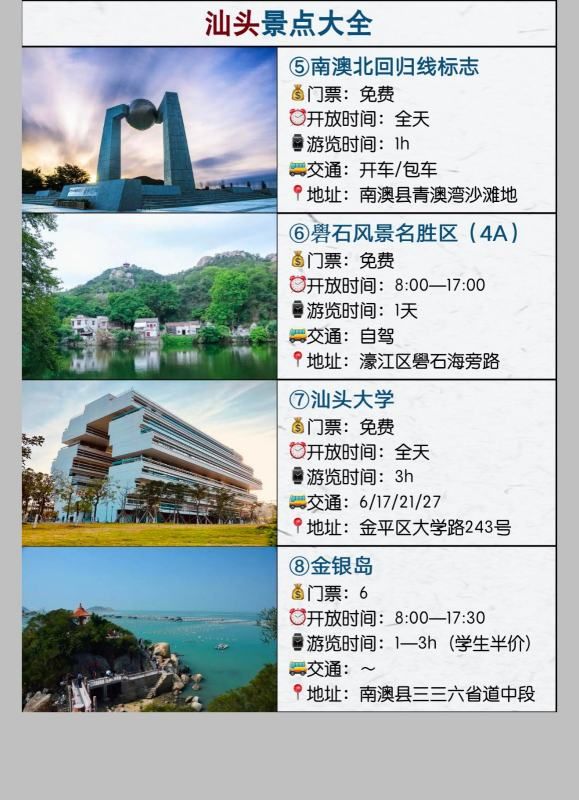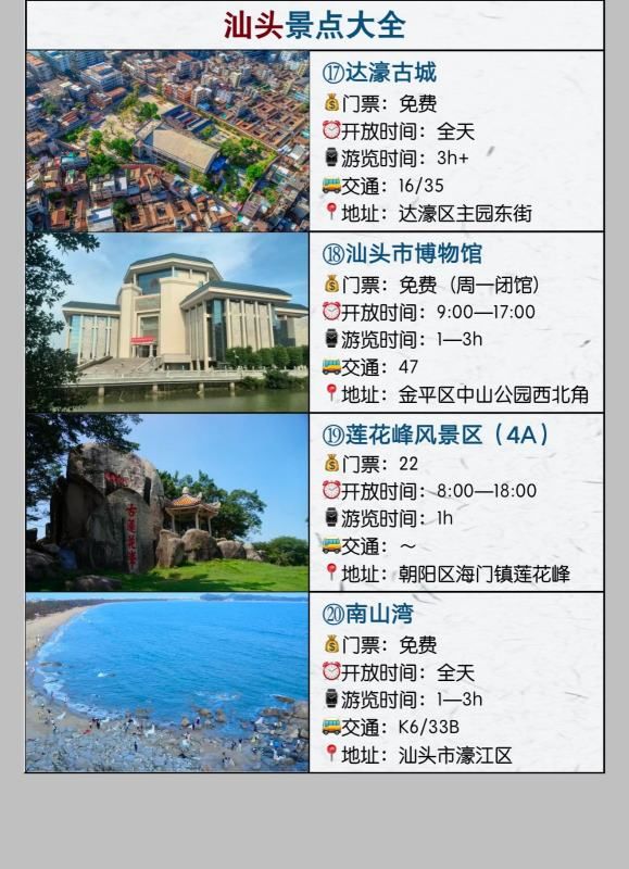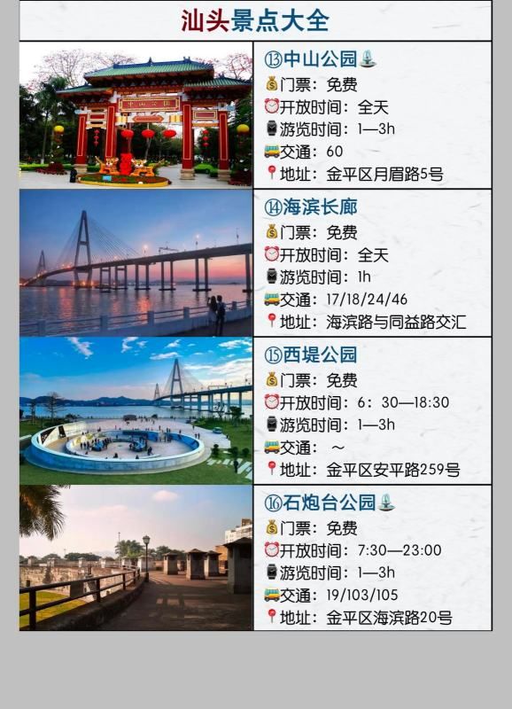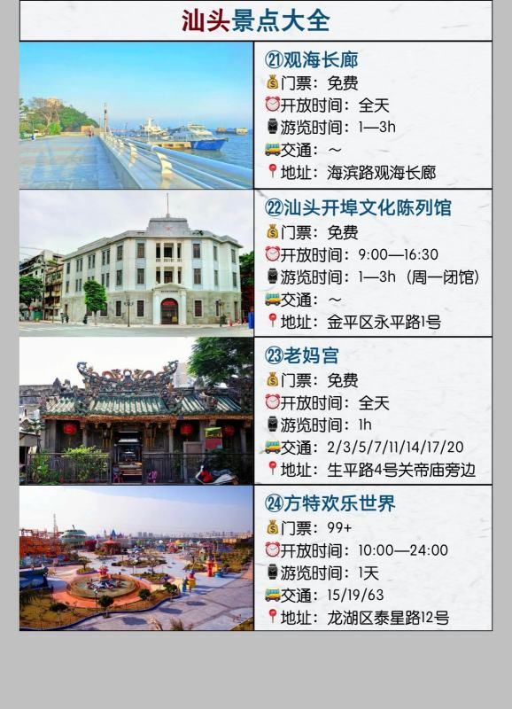 以下是汕头旅游景点的地址介绍。