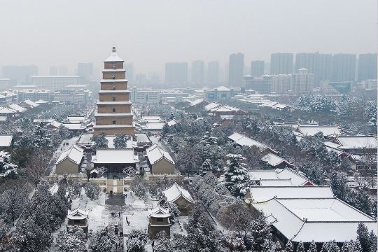 5、西安:西安的冬天,古城墙在雪中显得更加庄重和壮丽,充满了历史和自然的融合之美,可以参观兵马俑、大雁塔等著名景点,感受到浓厚的历史文化氛围。