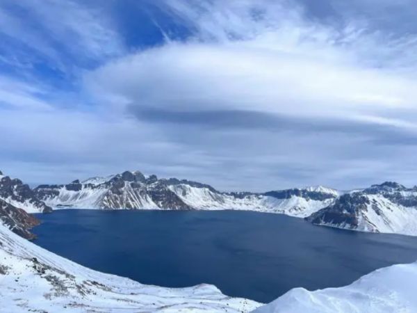 长白山天池是一座休眠火山,火山口积水成湖,夏融池水湛蓝:冬冻冰面皓白,被16座山峰环绕。天池是中国最大的火山湖,也是世界上最深的高山湖泊,现为中朝两国的“界湖”。