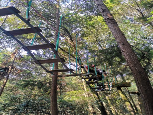 景区内的特色项目就是利用悬空桥梁、网道、步道、木桶、泰山秋千、飞狐索道和其他趣味环节等方式进行树木间的探险。