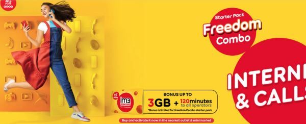 现在推出了Freedom Combo SIM卡套餐,意思是可以免费购买IM3的卡,激活后赠送3GB流量+ 120分钟通话套餐。