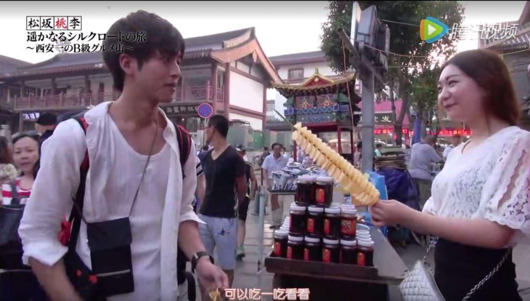 话说这松坂桃李一进入西安城里,整部纪录片的画风就变成了一部西安美食片。其中一个细节让悦君久久难忘,他在西安街头遇到2位姑娘,很有礼貌地询问这为何物?而我们的西安姑娘也很热情很爽朗地邀请他试吃,一瞬之间,觉得西安最美最大的风景是当地这些可爱的人们。
