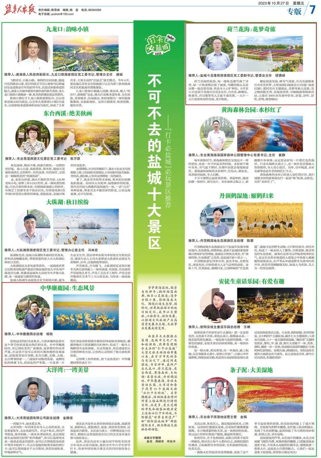 最终产生10个盐城文旅“必打卡目的地”