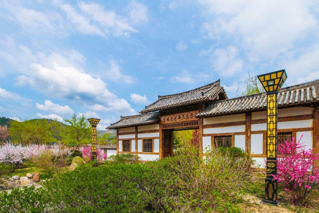 青瓦、白墙、坡顶、大屋面,一排排朝鲜族房舍整齐地排列开来,这个村子处处弥漫着朝鲜族民俗文化气息。走进果园朝鲜族民俗村,舒适地就仿佛回到了家中。