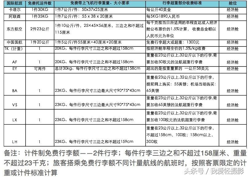 六,随身行李还是有要求的,这里也有一张表格,给大家参考