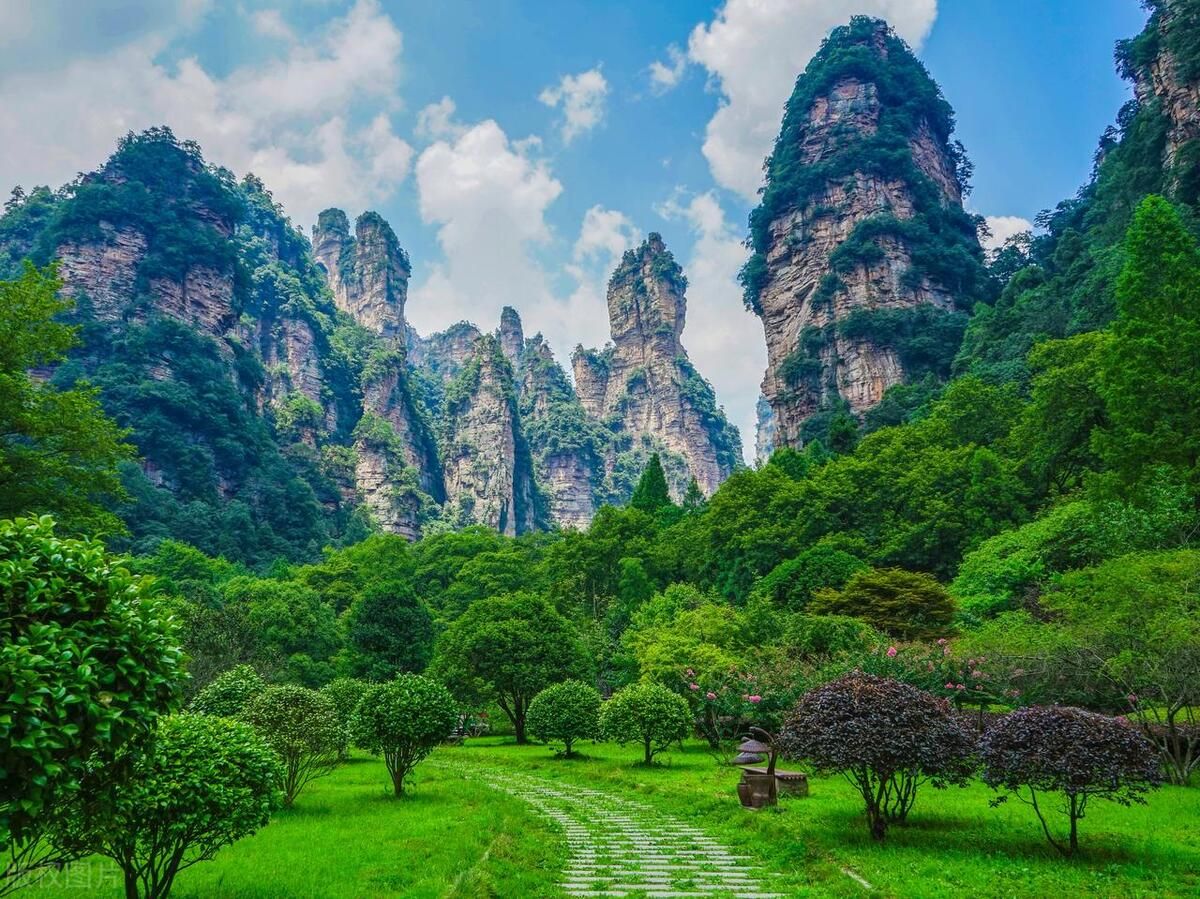 2、张家界:位于湖南的张家界国家森林公园在秋季展现出了壮丽的山峰、峡谷和奇特的石柱,被誉为"人间仙境"。这里的云雾缭绕,景色如画。