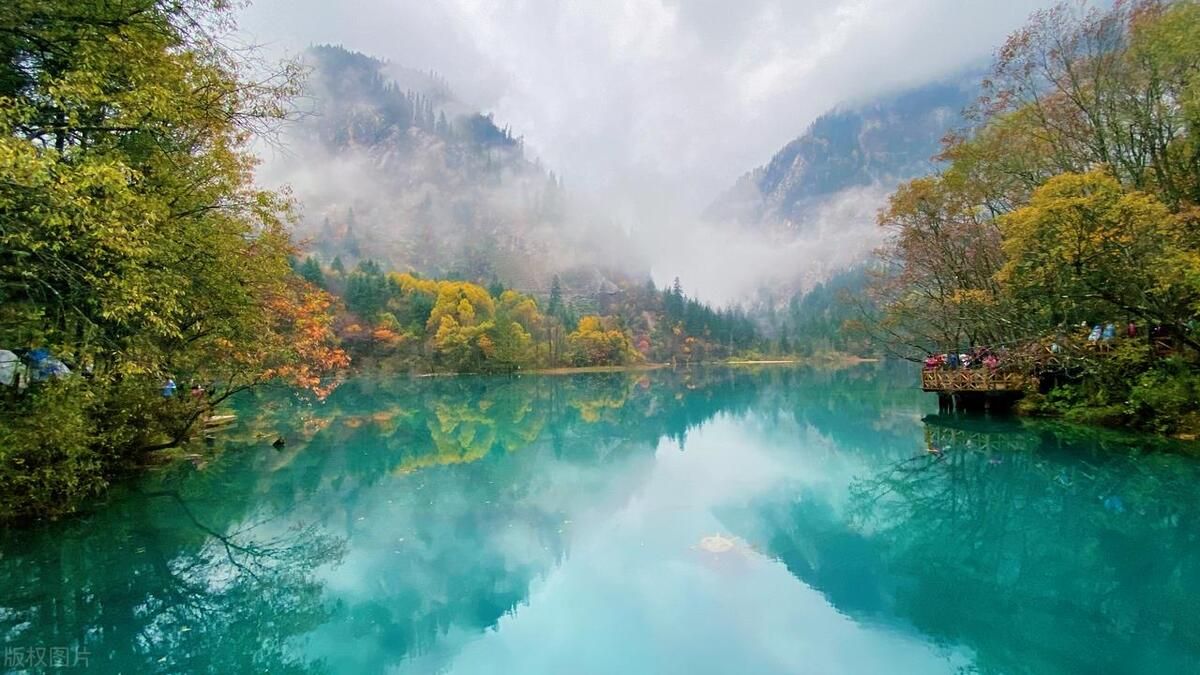 3、九寨沟:九寨沟在10月份左右进入秋季,整个景区的枫叶变成了绚丽的红色和金黄色,与蓝绿色的湖泊相映成趣,形成了独特的秋日美景。
